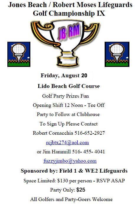 Jones Beach / Robert Moses Lifeguards Golf Championship IX Friday, August 20th (new date) Lido Beach Golf Course